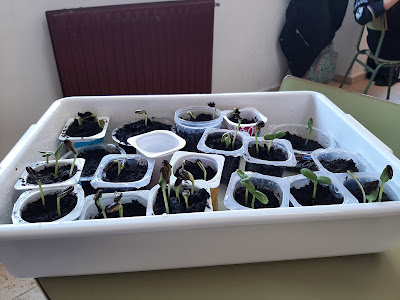 Como se pode ver nas imaxes o crecemento dos xirasoles que prantamos foi moi rápido. A semente (as pipas) que prantamos pronto saíu da terra formando unha nova pranta.